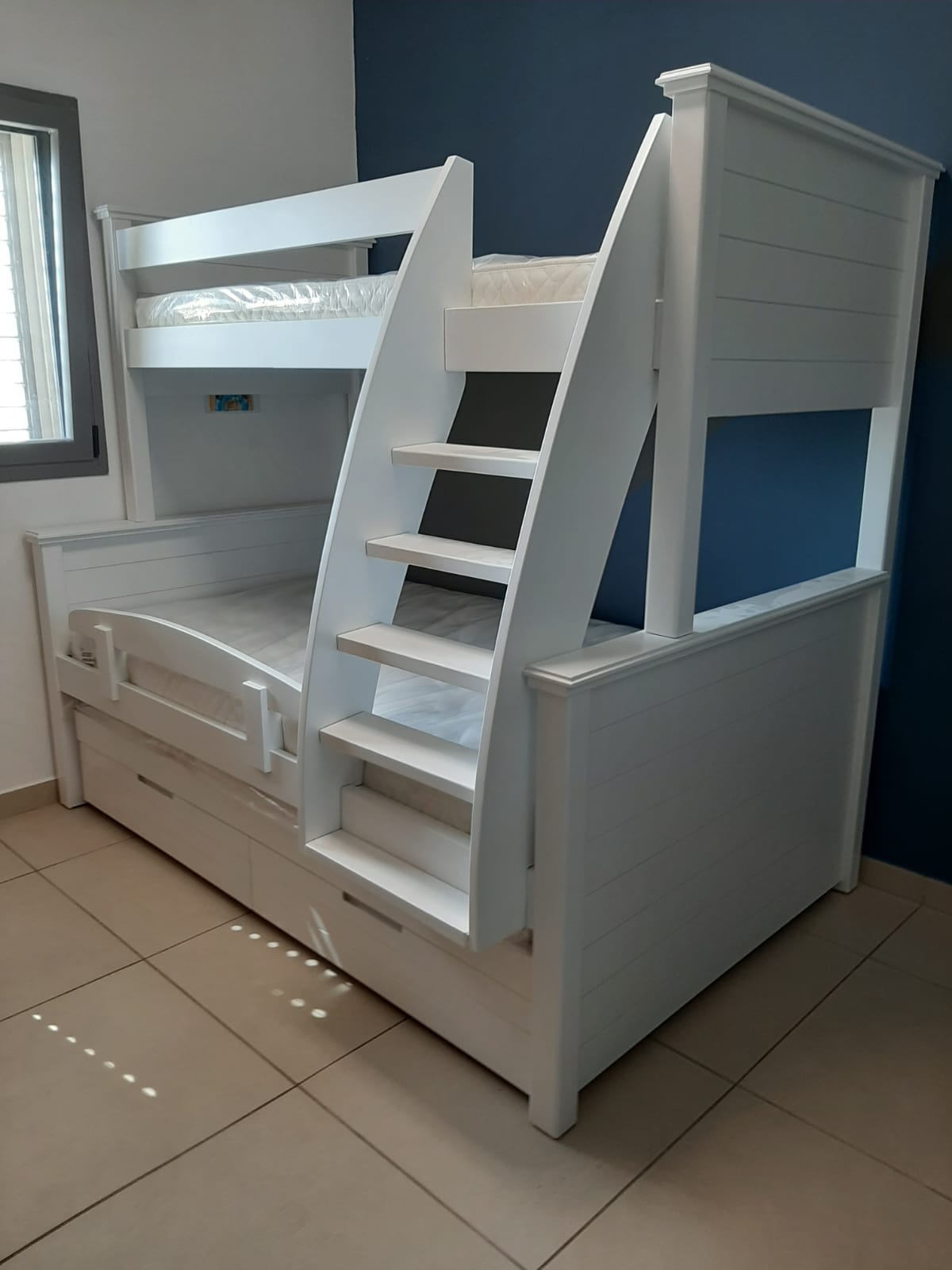 המיטה כוללת מיטה נוספת תחתונה נשלפת, בעלת זוג מגירות אחסון (סה״כ 3 מיטות)